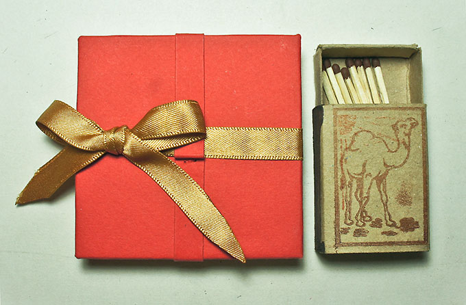 One copy hand-made book. Text: Talmud Babli, Shabat, 104, 1. Paper, ink, gouache, 7,5 x 7,5 cm. 2012